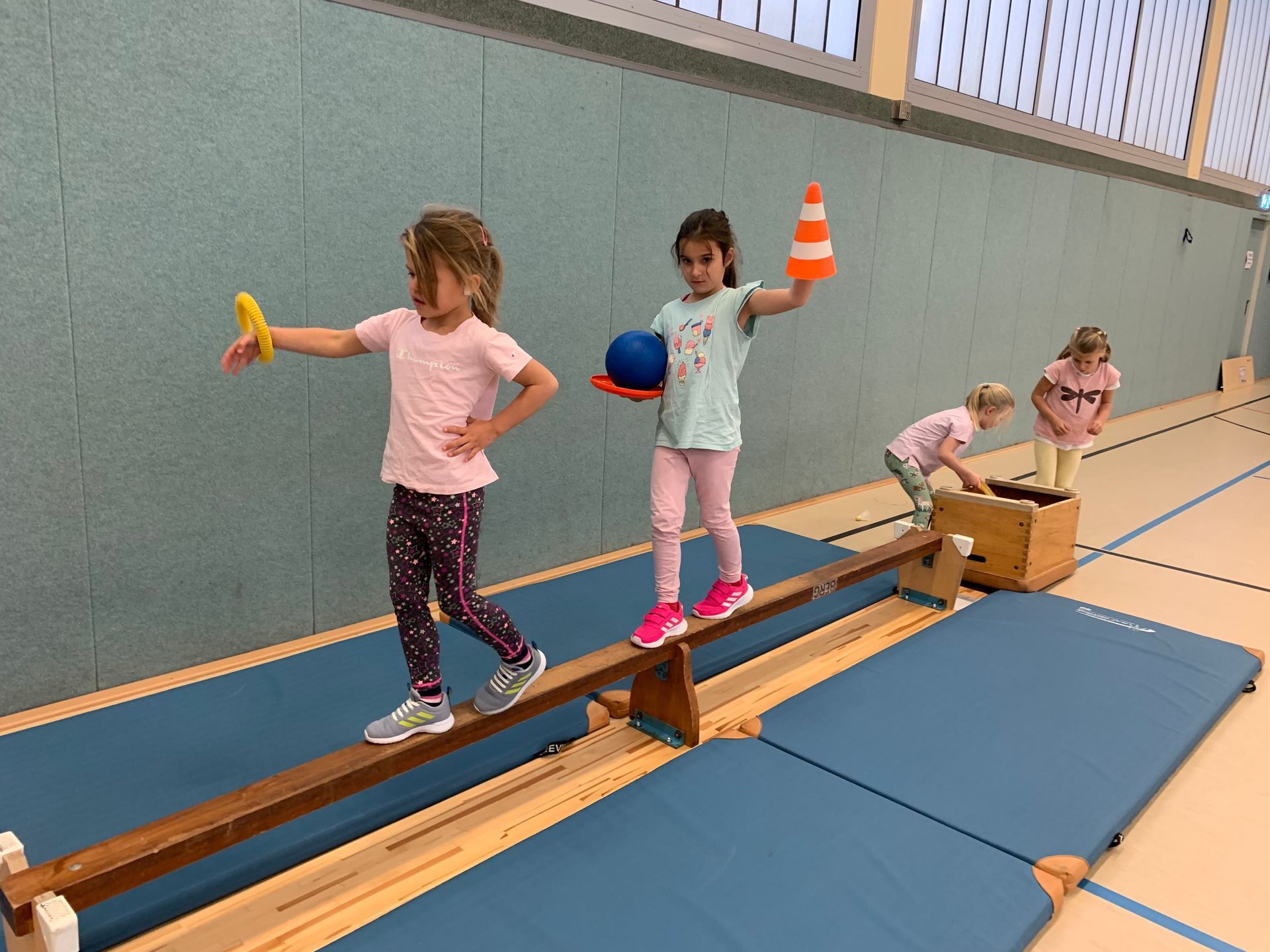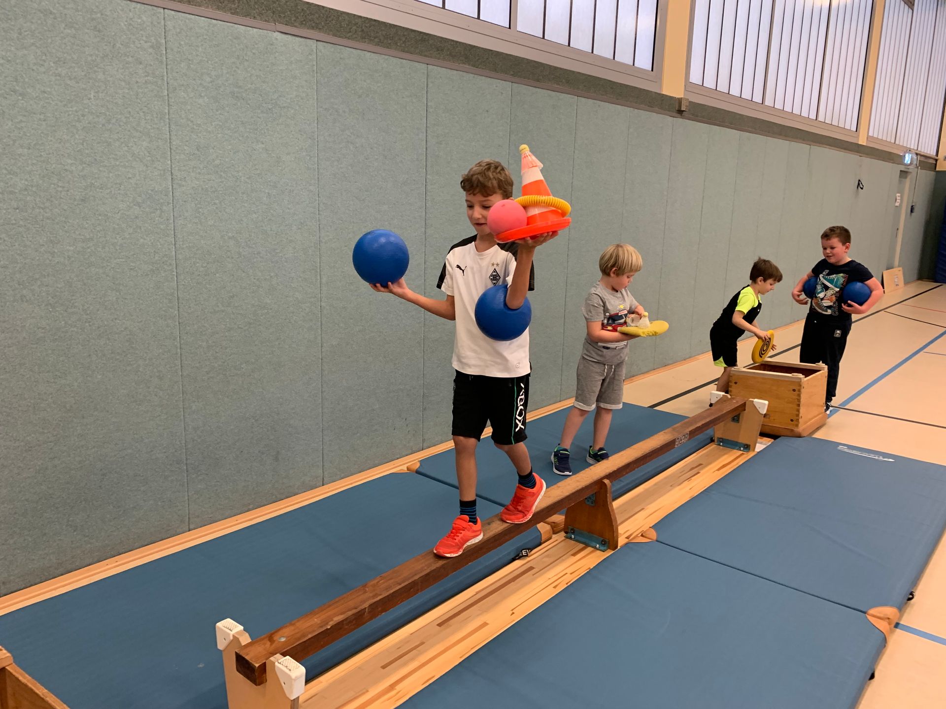 Im Sportunterricht haben wir das Balancieren auf unterschiedliche Art geübt.