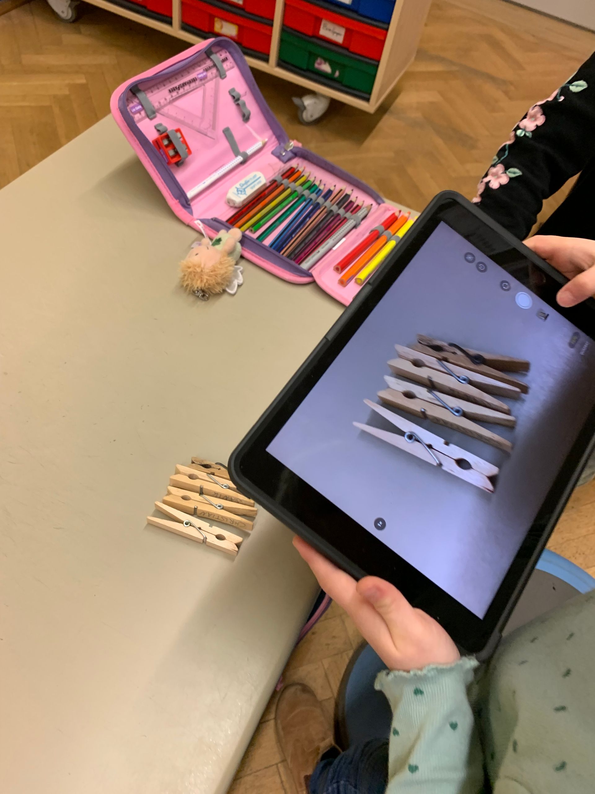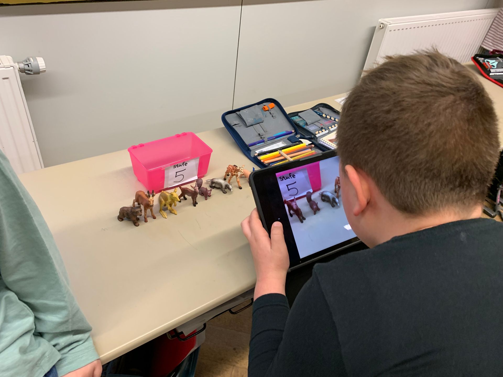 Wir fotografieren Plus-und Minusaufgaben mit dem Tablet.
