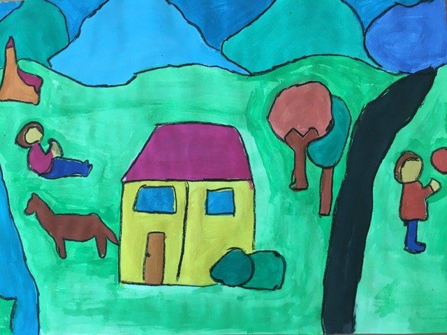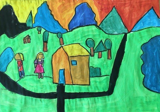 Wir haben die Künstlerin Gabriele Münter kennengelernt und Bilder wie sie gemalt! Natürlich hängen alle Bilder auch in der Klasse, damit jeder Besucher unsere Gemälde bestaunen kann.
