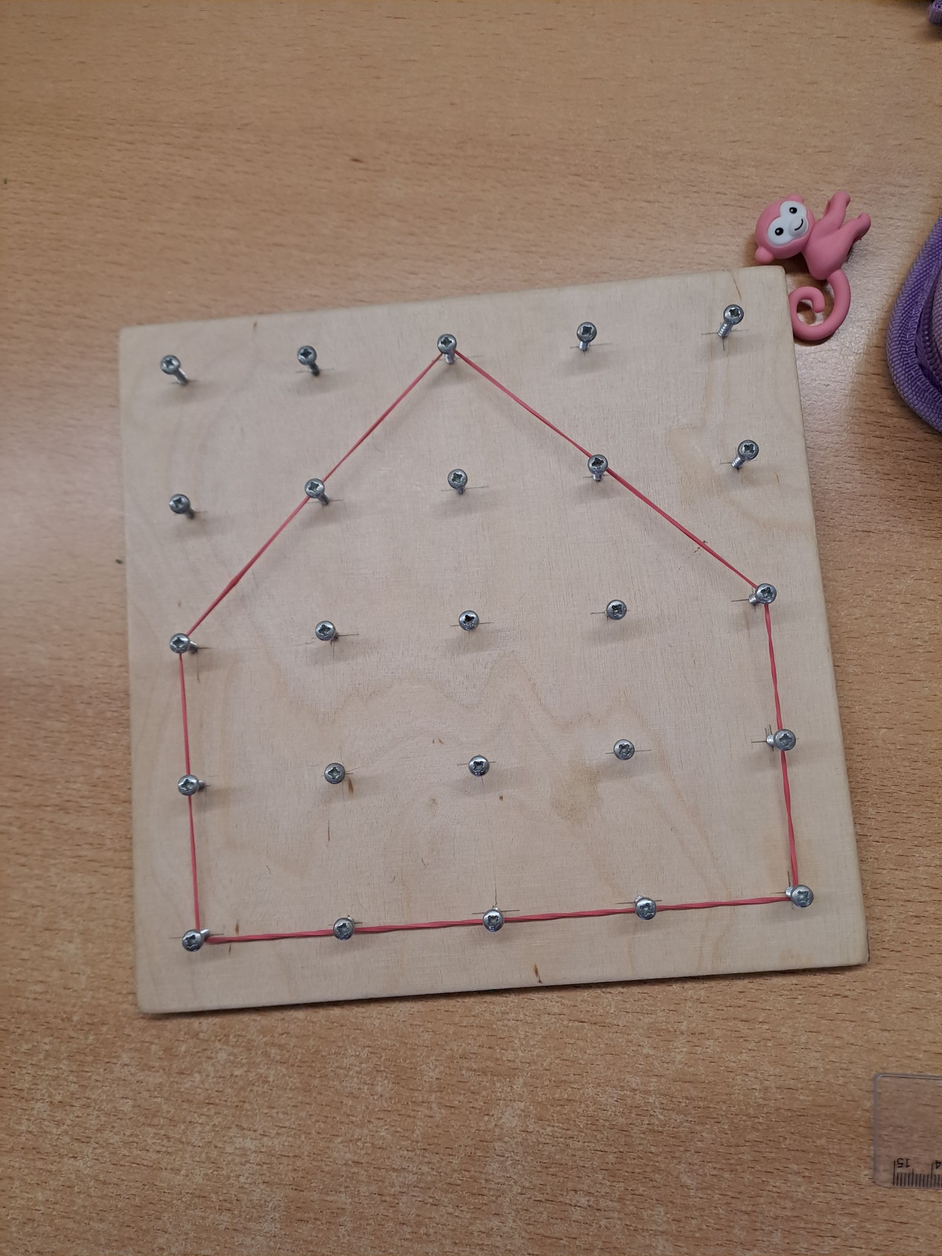 Im Matheunterricht haben wir entdeckt, dass unsere Umwelt voller Symmetrie steckt. Dazu haben wir den Klassenraum mit Spiegeln untersucht. Auch am Geobrett konnten wir dann symmetrische Formen spannen.