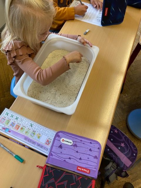 Heute haben wir unseren ersten Buchstaben gelernt: das L. Dazu haben wir erst eine Geschichte zum L gehört und dann geübt, wie man ein großes L und ein kleines l schreibt. Anschließend durften wir unseren Buchstabenweg machen. Da kneten wir, suchen die Buchstaben in einer Buchstabensuppe, schreiben in den Sand und vergleichen Anlaute. Das macht großen Spaß. Hoffentlich lernen wir bald noch mehr Buchstaben.
